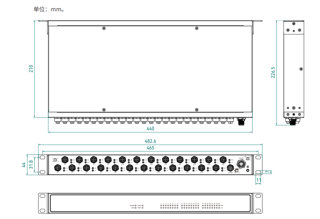 482.6×44×210(mm)(含挂耳不含连接器尺寸)
