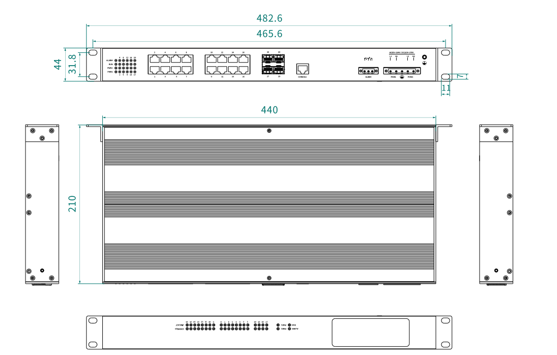 482.6×44×210 (mm)(含挂耳不含连接器尺寸) |