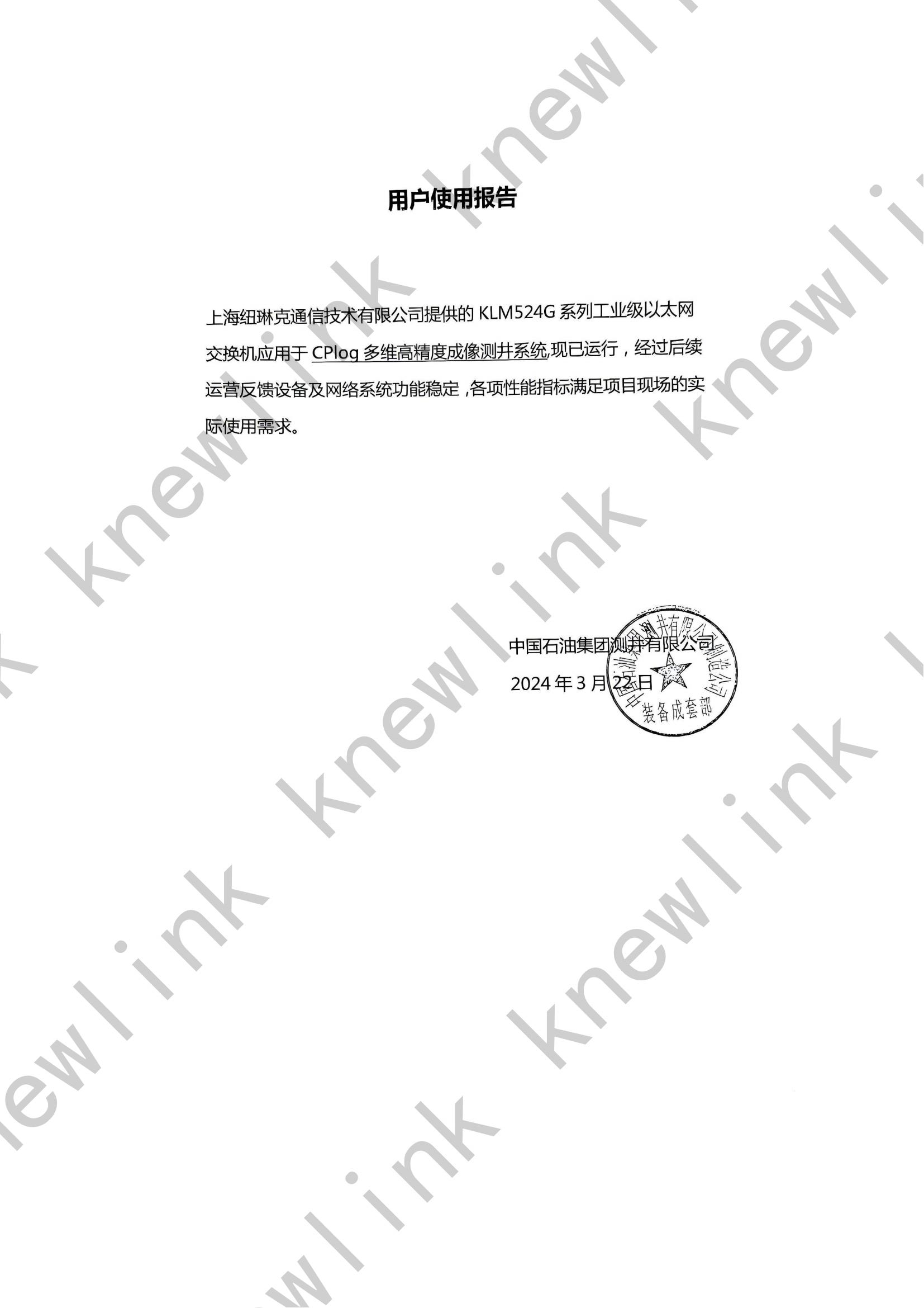 KLM524G工业交换机应用于中石油测井CPLog多维高精度成像测井系统报告