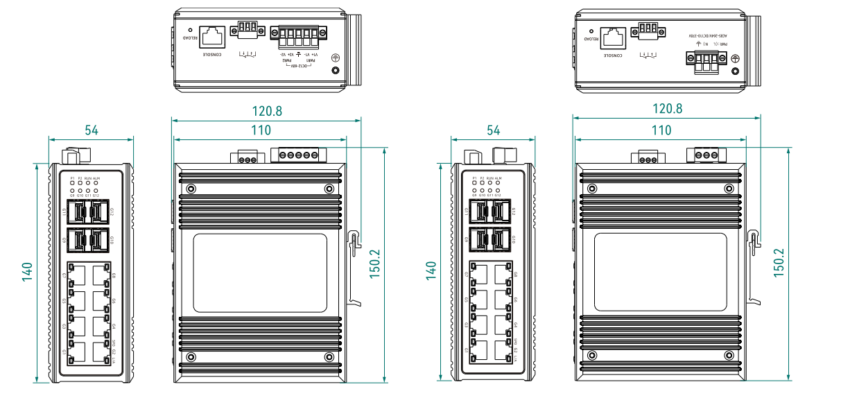 该系列支持单双电源、支持交/直流AC/DC110/220V电源输入或者直流DC12~48V宽压供电输入,采用导轨式安装方式,能满足不同应用现场的需求。