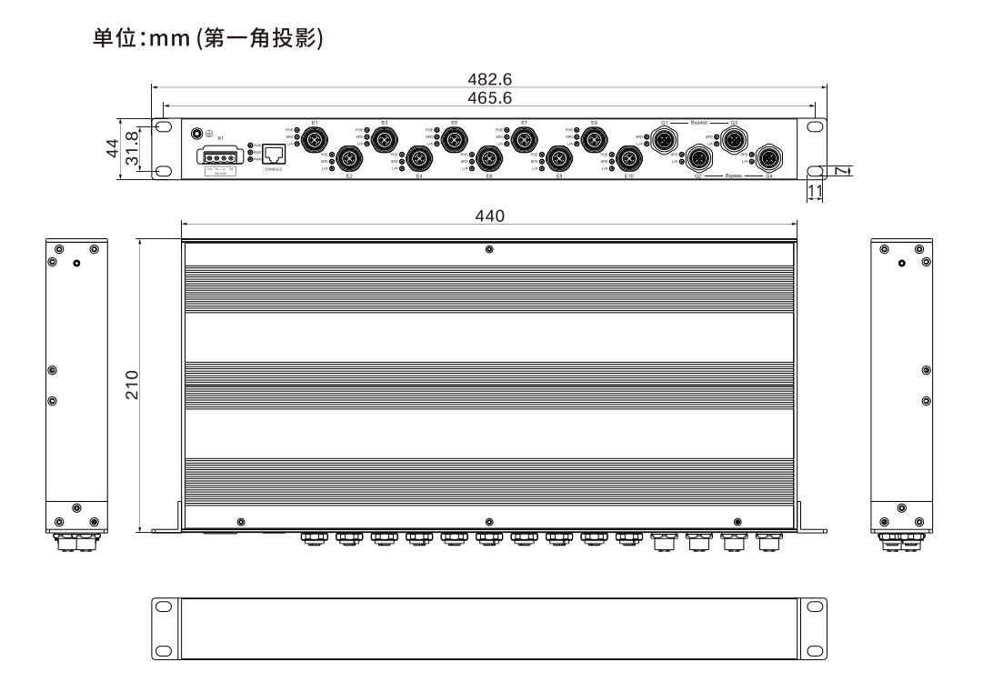 482.6×44×210(mm)(含挂耳)