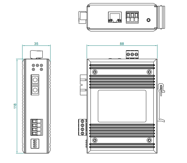 物理尺寸(宽×高×深):118mm×35mm×88mm(不含卡扣) |