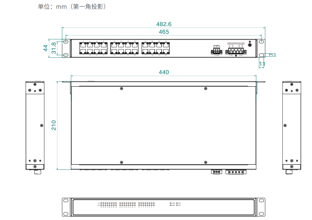 外形尺寸 482.6×44×210(mm)(含挂耳)
