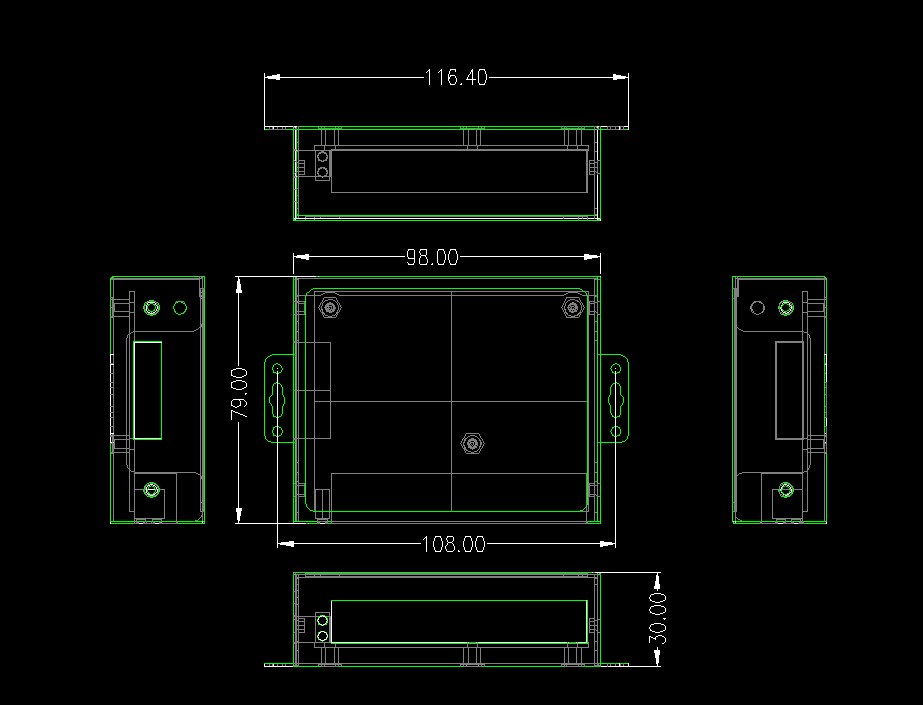 外壳:铝制机箱散热表面设计无风扇,IP40 防护等级 尺寸:116.4*79*30 mm 安装方式:壁挂式安装 |