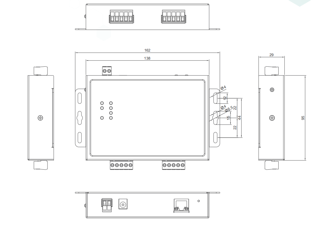 ◆ 提供工业级的直流电源DC9~36V输入,具有防反接保护;